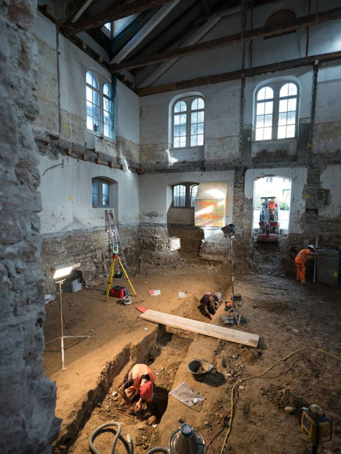 Das war eine Überraschung: Basler Archäologen fanden im nördlichen Anbau der Kaserne in einem Graben 27 Skelette von mutmasslichen Soldaten des 19. Jahrhunderts. Sie vermuten, dass die Toten damals einer Typhus-Epidemie zum Opfer gefallen waren und schnell bestattet werden mussten. Erste anthropologische Untersuchungen hätten ergeben, dass die Skelette alle von jungen Männern stammen, die neben- und übereinander auf dem Bauch und dem Rücken im Graben lagen.